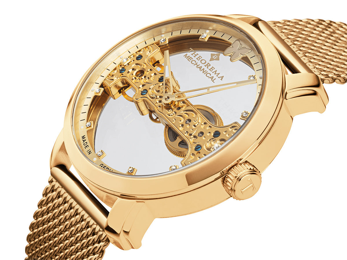 Ora Lady Butterfly nuk ka asnjë detaj të vetëm jashtë vendit. Kjo orë do të shfaqë një performancë mekanike fantastike. Një orë shumë e detajuar me një pamje gjeometrike perfekte që i përshtatet zotërisë perfekt.