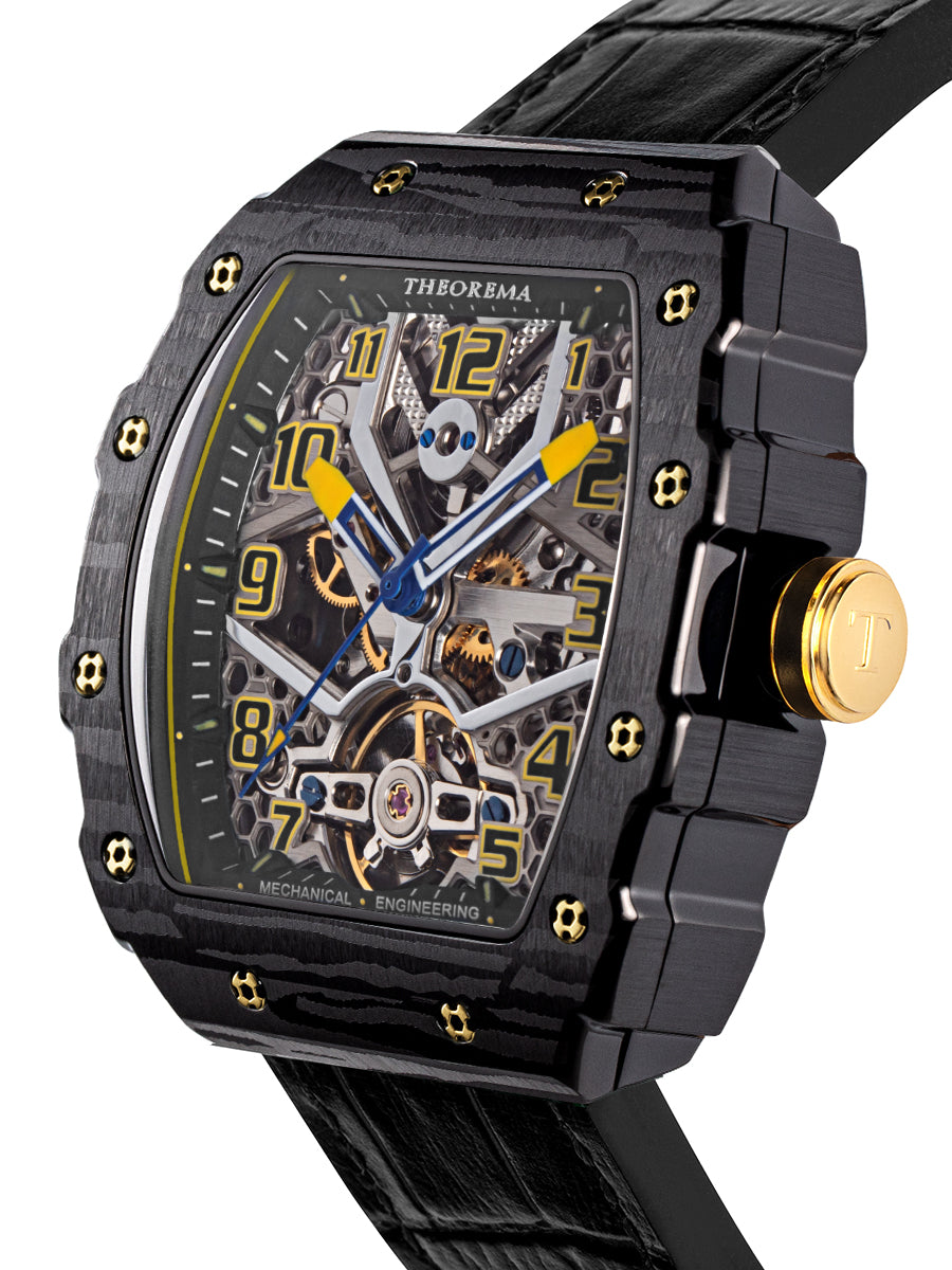 The Automatic Singapore by Theorema Germany exemplifies a masterful blend of technical sophistication and timeless design. Its tonneau-shaped case, measuring 48 x 42 mm, offers a bold yet refined presence on the wrist, evoking the classic lines of traditional watchmaking while embracing modern aesthetics.